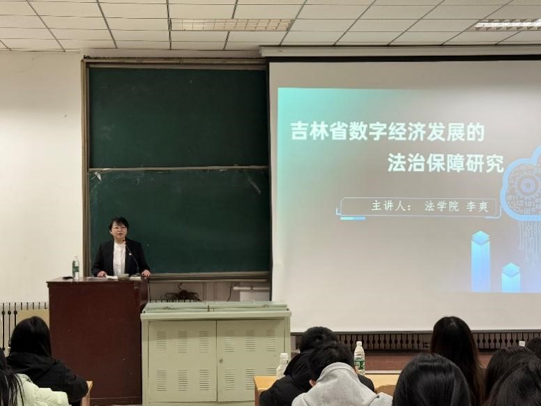 3月31日,法学院院长助理李爽教授在阶梯教室A以《吉林省数字经济发展的法治保障研究》为题拉开了系列讲座的序幕。李爽围绕我国数字经济的发展现状及其对法治建设的深层影响进行了系统梳理,并在此基础上构建了分析框架,提出了吉林省特色化法治保障对策。她认为,新时代人才需以“专业筑基-实践赋能”的双向路径主动对接数字经济发展需求。她还勉励学生们深入专业学习,积极投身实践。此次讲座使大家对数字经济发展的法治保障有了更深刻地认识,也为法学院学生未来的学术道路指明了方向。